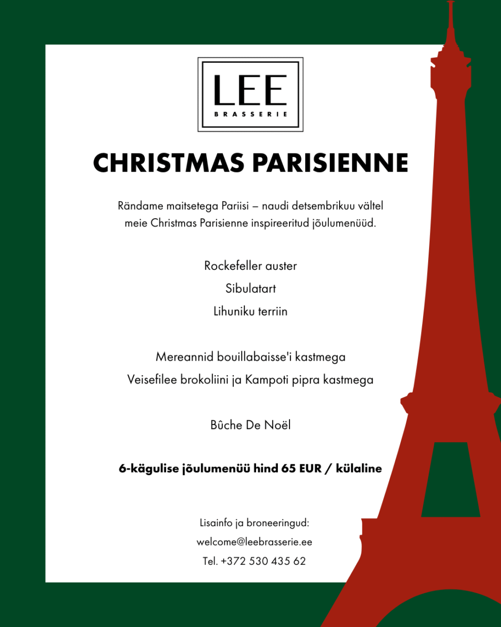 Lee detsembrimenüü toob lauale prantsuse köögi ikoonid meie käekirjaga — austrid, mereannid bouillabaisse’i kastmes ja klassikaline Bûche de Noël.